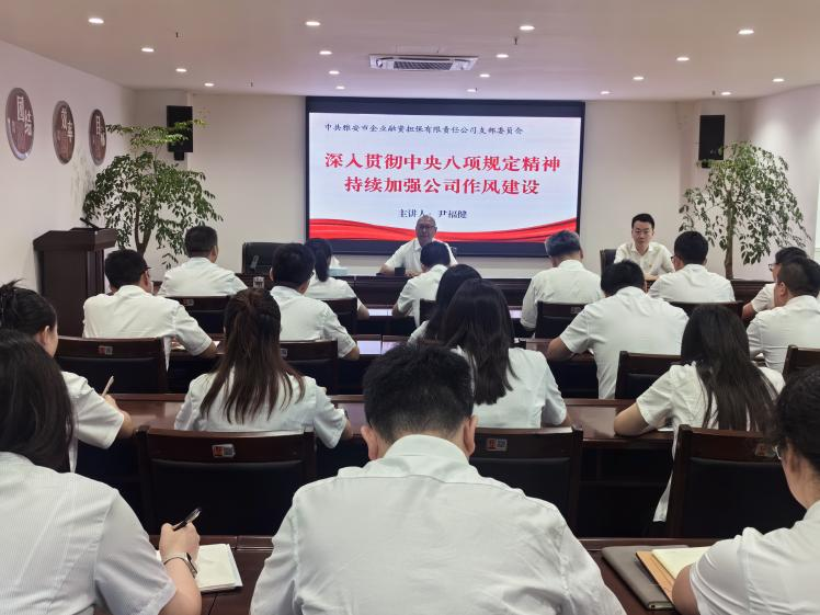 二是黨支部書記講專題黨課。市擔(dān)保公司黨支部書記、董事長尹福健以“深入貫徹中央八項規(guī)定精神,持續(xù)加強(qiáng)公司作風(fēng)建設(shè)”為題,為全體黨員、入黨積極分子講授了一堂生動的專題黨課。黨課圍繞充分認(rèn)識開展學(xué)習(xí)教育的重大意義、深刻把握中央八項規(guī)定精神的豐富內(nèi)涵和實踐要求、充分認(rèn)識違反中央八項規(guī)定精神的嚴(yán)重性和危害性以及準(zhǔn)確把握黨的作風(fēng)建設(shè)的重點(diǎn)任務(wù),自覺強(qiáng)黨性正作風(fēng)守紀(jì)律等4個方面展開,為進(jìn)一步加強(qiáng)作風(fēng)建設(shè)指明了方向、提供了遵循。