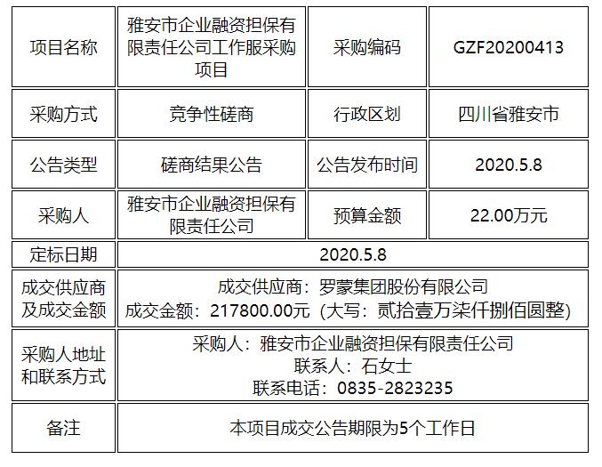 工作服采購項目競爭性磋商結果公告